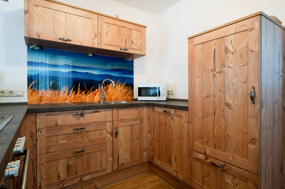 Ferienwohnung mit ca. 85 m² im Haus Kornkammer, Wohnzimmer mit Esstisch, Sofa und Zugang zur Terrasse, moderne und komplett ausgestattete Design-Küche, 1 Schlafzimmer mit erhöhtem Doppelbett, 1 barrierefreies Schlafzimmer mit erhöhtem Doppelbett, 1 Badezimmer mit Dusche und WC, 1 barrierefreies Badezimmer mit rollstuhltauglicher Dusche und WC, Fön und Kosmetikspiegel. Große Terrasse, Kabel TV, Radio, WLAN. Kostenlose Nutzung des Schwimmteichs, die Sauna ist gegen Gebühr für private Nutzung möglich. Parkplatz am Haus. Bitte haben Sie Verständnis, dass wir keine Tiere nehmen.