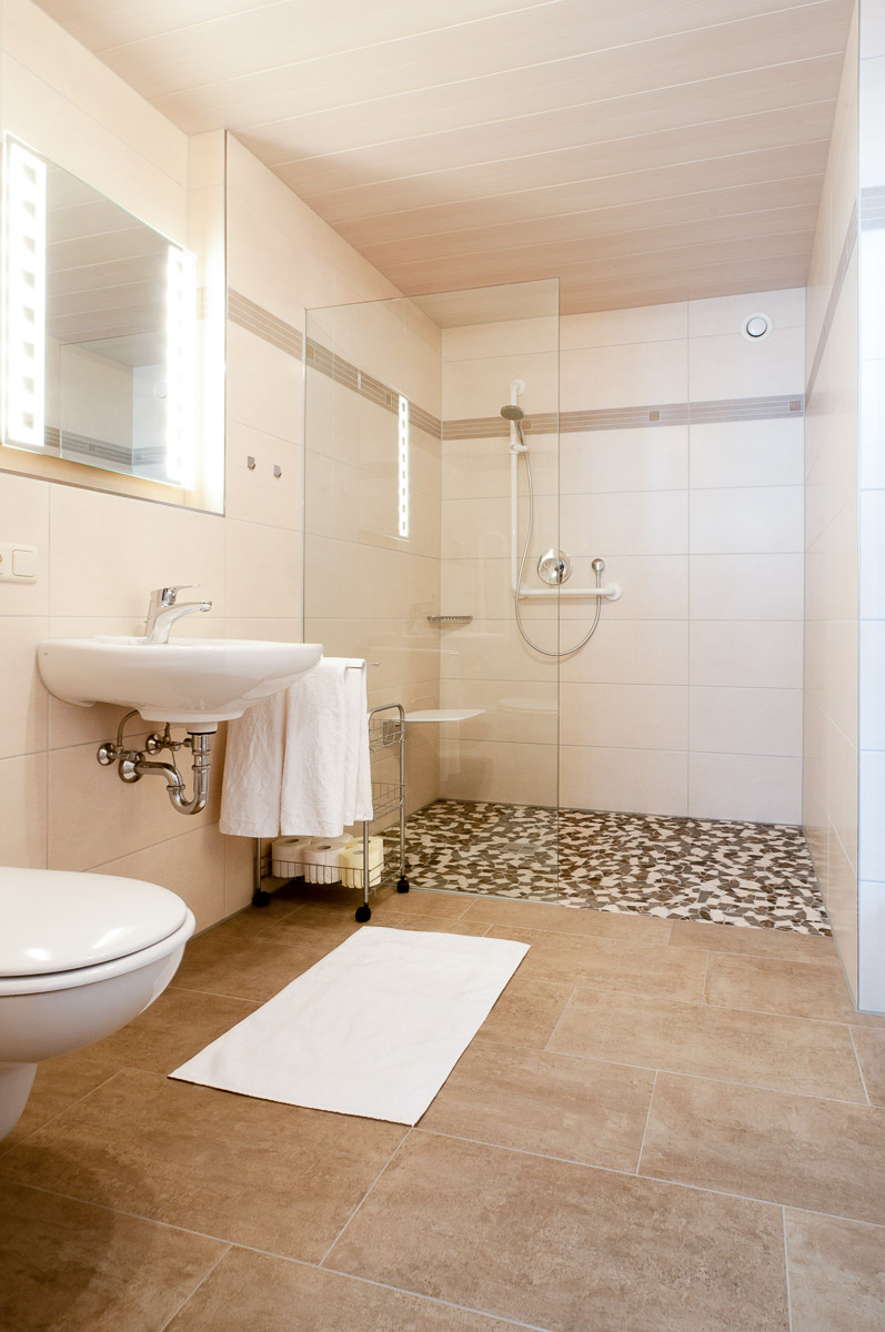 Im ersten Schlafzimmer mit Zugang zur Terrasse finden Sie ein bequemes erhöhtes Doppelbett. Direkt nebenan befindet sich ein Badezimmer mit Dusche und WC. Das zweite Schlafzimmer verfügt ebenfalls über ein erhöhtes Doppelbett, das vor allem für gehbehinderte Gäste ein bequemes Einsteigen ermöglicht. Das zweite und größere Badezimmer ist ebenfalls barrierefrei. Es verfügt über Haltegriffe am WC sowie in der mit einem Rollstuhl befahrbaren, modernen Dusche. In der Dusche gibt es eine Sitzgelegenheit. TV, WLAN kostenlos.